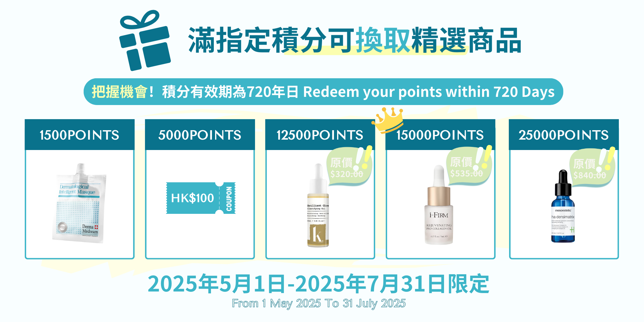 - 積分有效期為720天(由最後購買日起計720天內沒有任何消費,積分會自動取消)